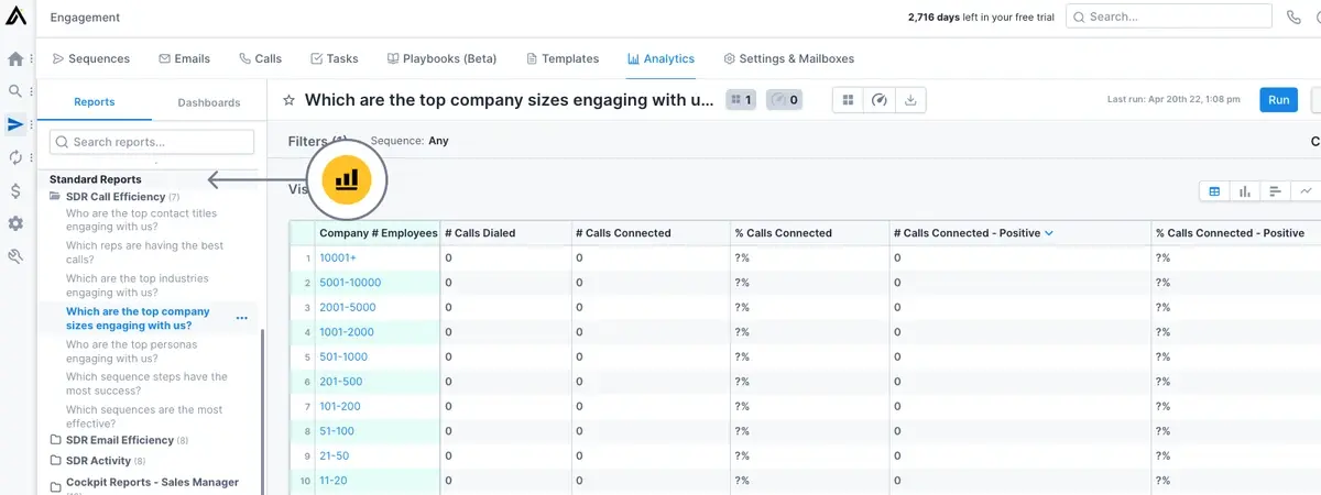 Want to know which sequence steps have the most success? What your team activity looks like? Subject line 'X' percentage of emails opened? Last week's call statistics?