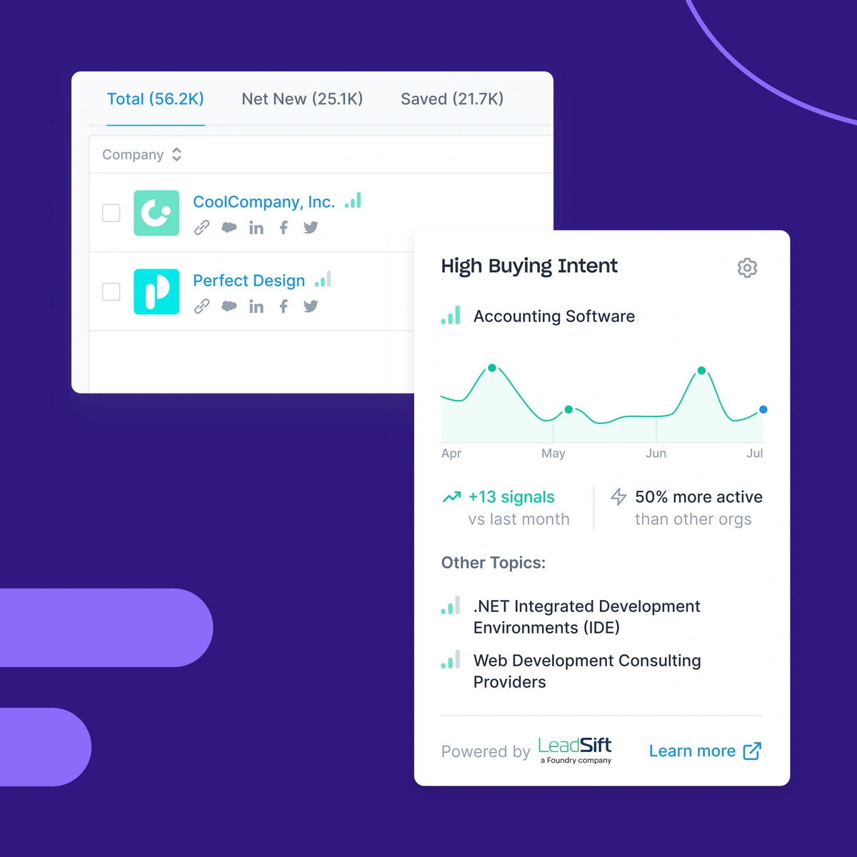By teaming up with an intent data provider like Apollo, you get the buyer intelligence you need to stop prospecting in the dark and start selling with confidence. Find in-market accounts, personalize your outreach, and convert at scale. Ready to see how it works? Get Started with a free account.