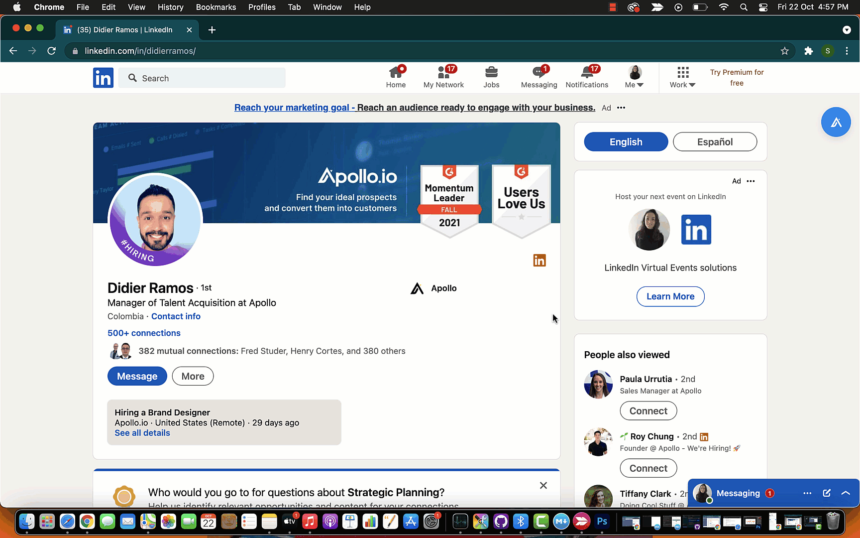 The Apollo Chrome Extension is a functional data and engagement tool that is perfect for recruiters looking to find and add the right candidates into their pipeline with ease.