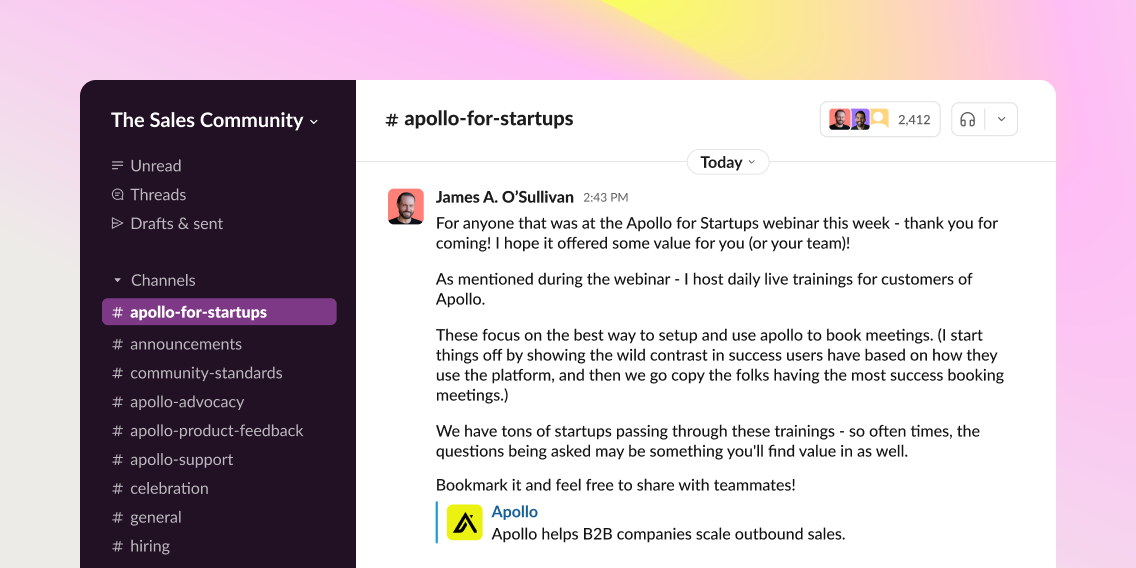 Enjoy startup-focused webinars and other resources to help you get the most out of Apollo for your specific needs.